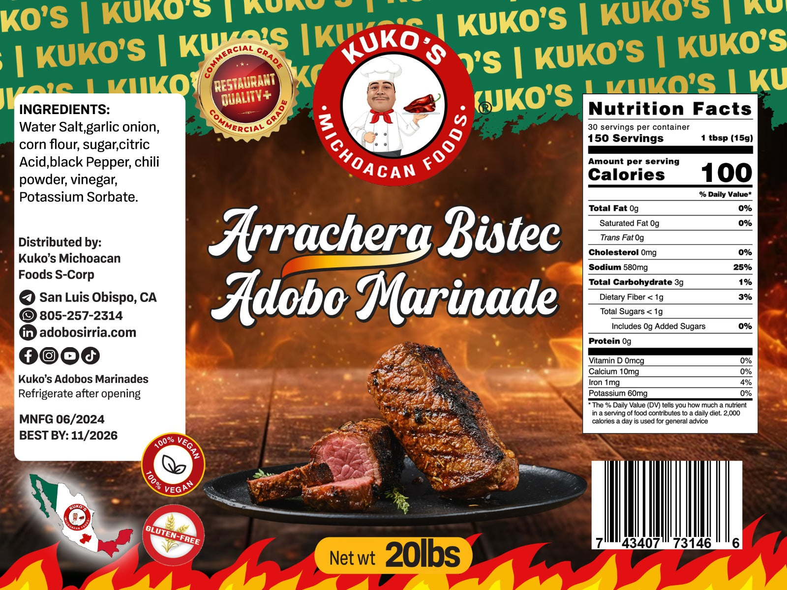 This Arrachera Bistec Steak marinade is a must-have for any steak lover. Made with the finest ingredients, it adds a robust and savory flavor to your favorite cut of beef. The perfect blend of spices and herbs will elevate your grilling game and impress your taste buds. Taste the difference with Arrachera Bistec skirt Steak marinade.
